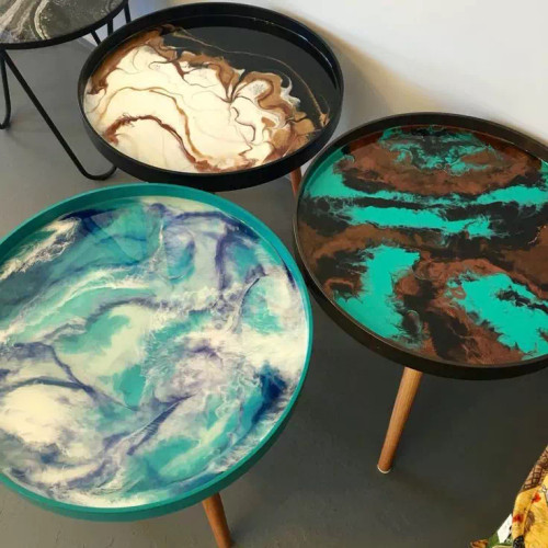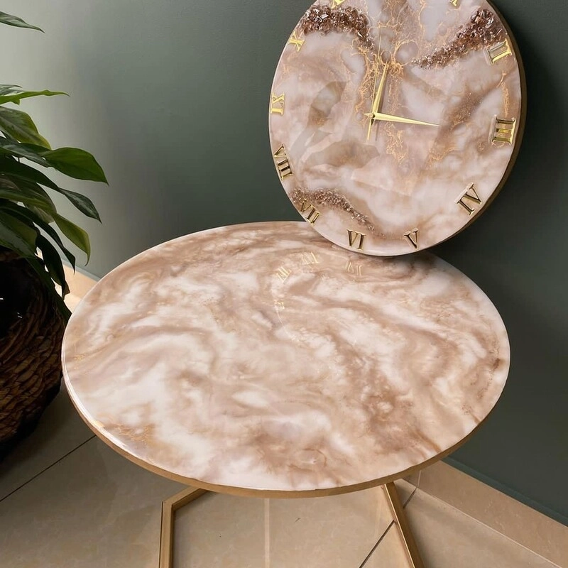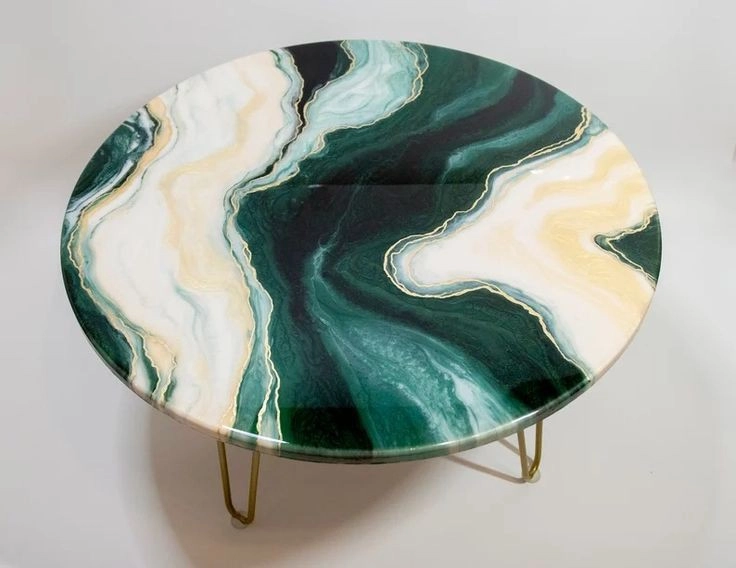 میز جلو مبلی رزینی طرح دفرمه قطر80 جهیزیه عروس
