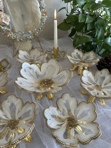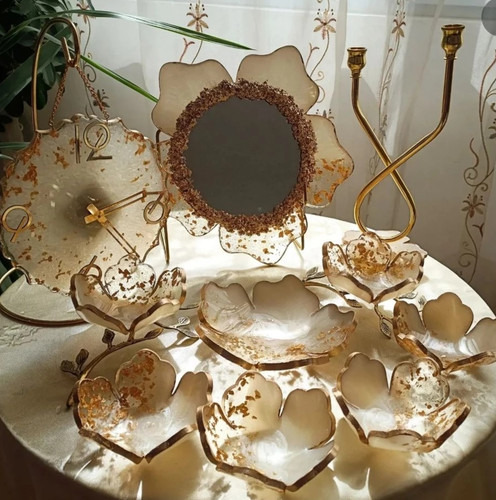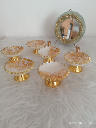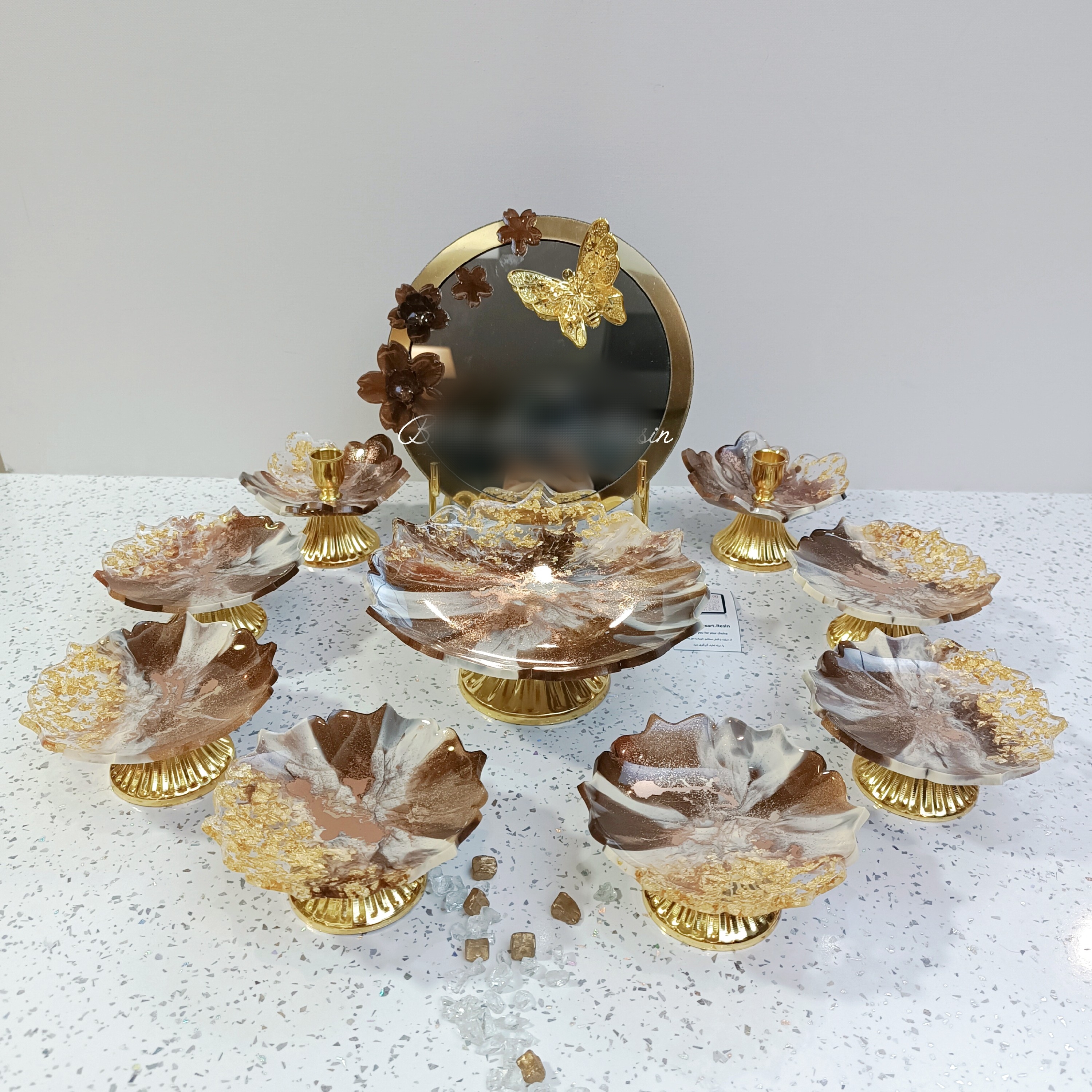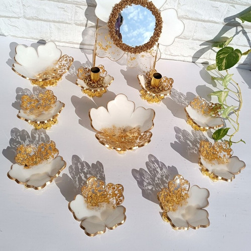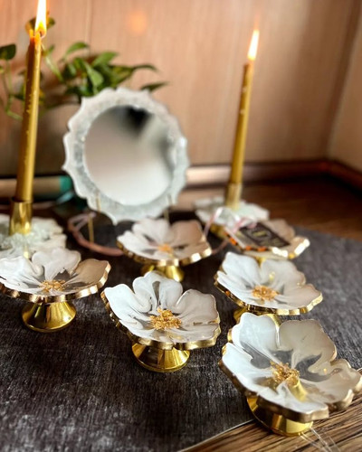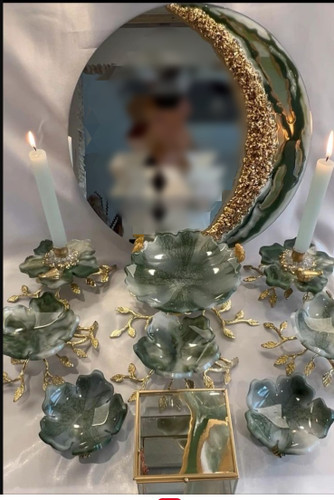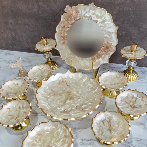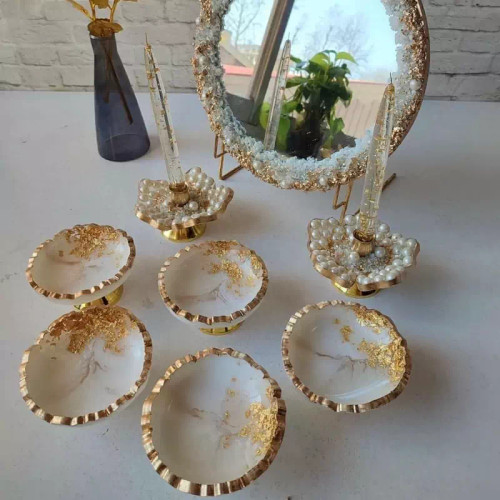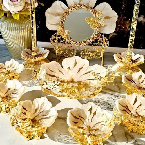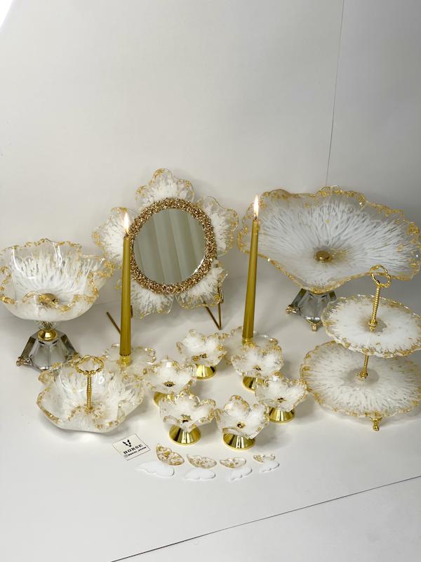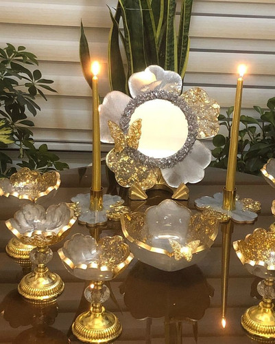 هفت سین رزینی سفید طلایی با آینه تمام رزین تمام کارهای رزینی سفارشی هستند