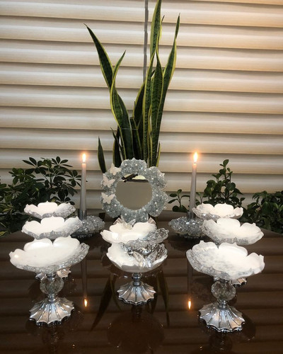 ست پذیرایی ۵تکه و هفت سین رزینی سفید نقره ای شیک