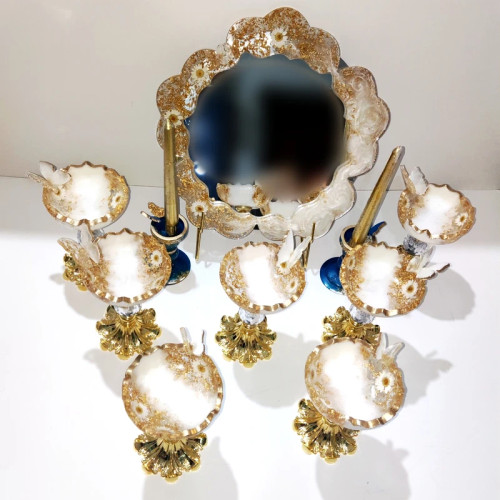 هفت سین طرح مرمر رزینی شیک لب طلایی شامل آینه یک جفت شمعدون پایه آینه 6 عدد پیاله هفتسین و استند سبزه