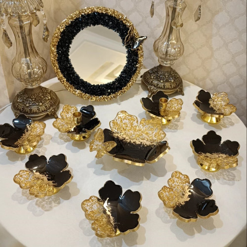 ست هفت سین رزینی جهیزیه عروس طلایی مشکی