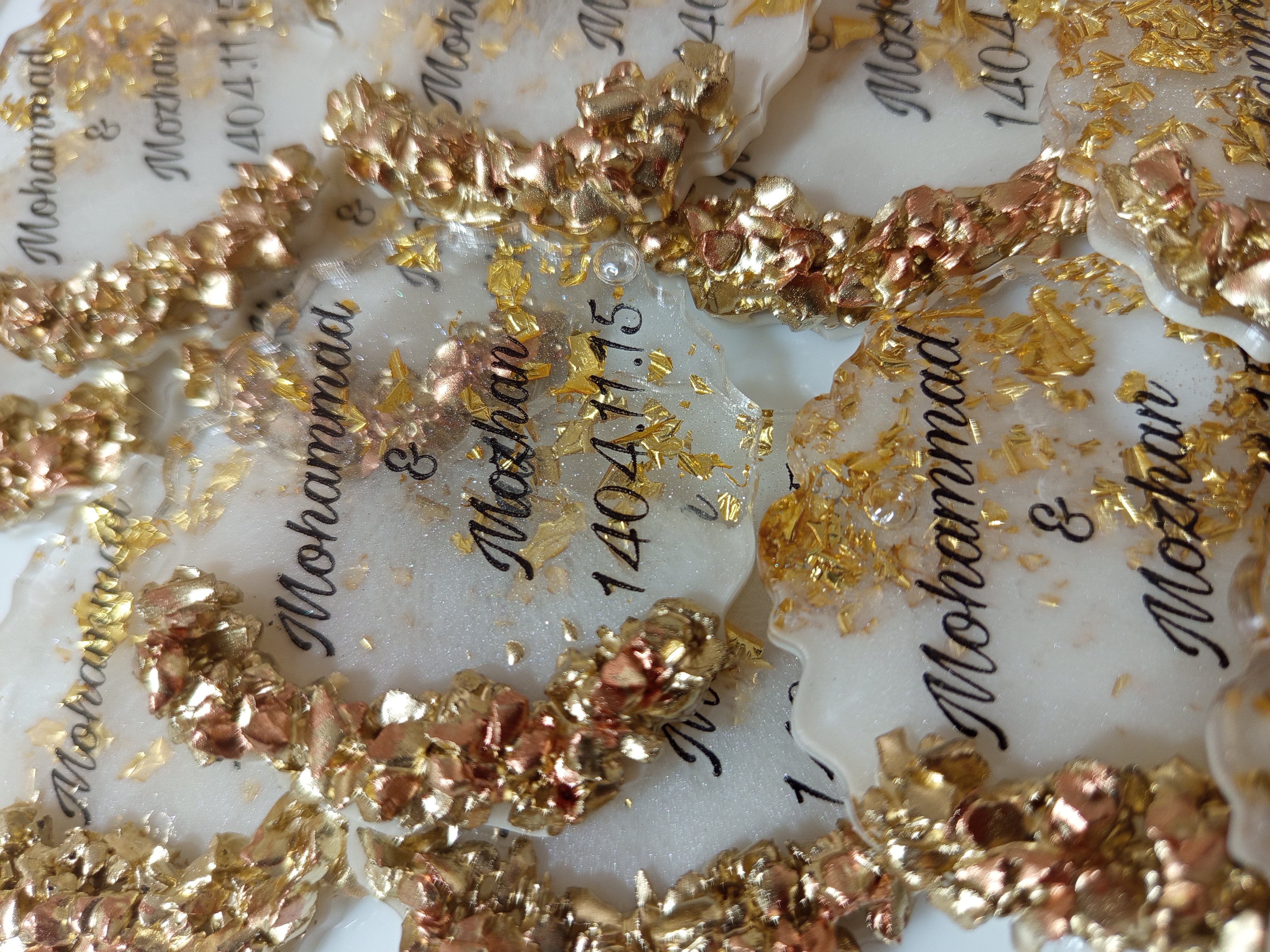 گیفت عقد وعروسی رزینی ورق طلا و فرم های دلخواه شما