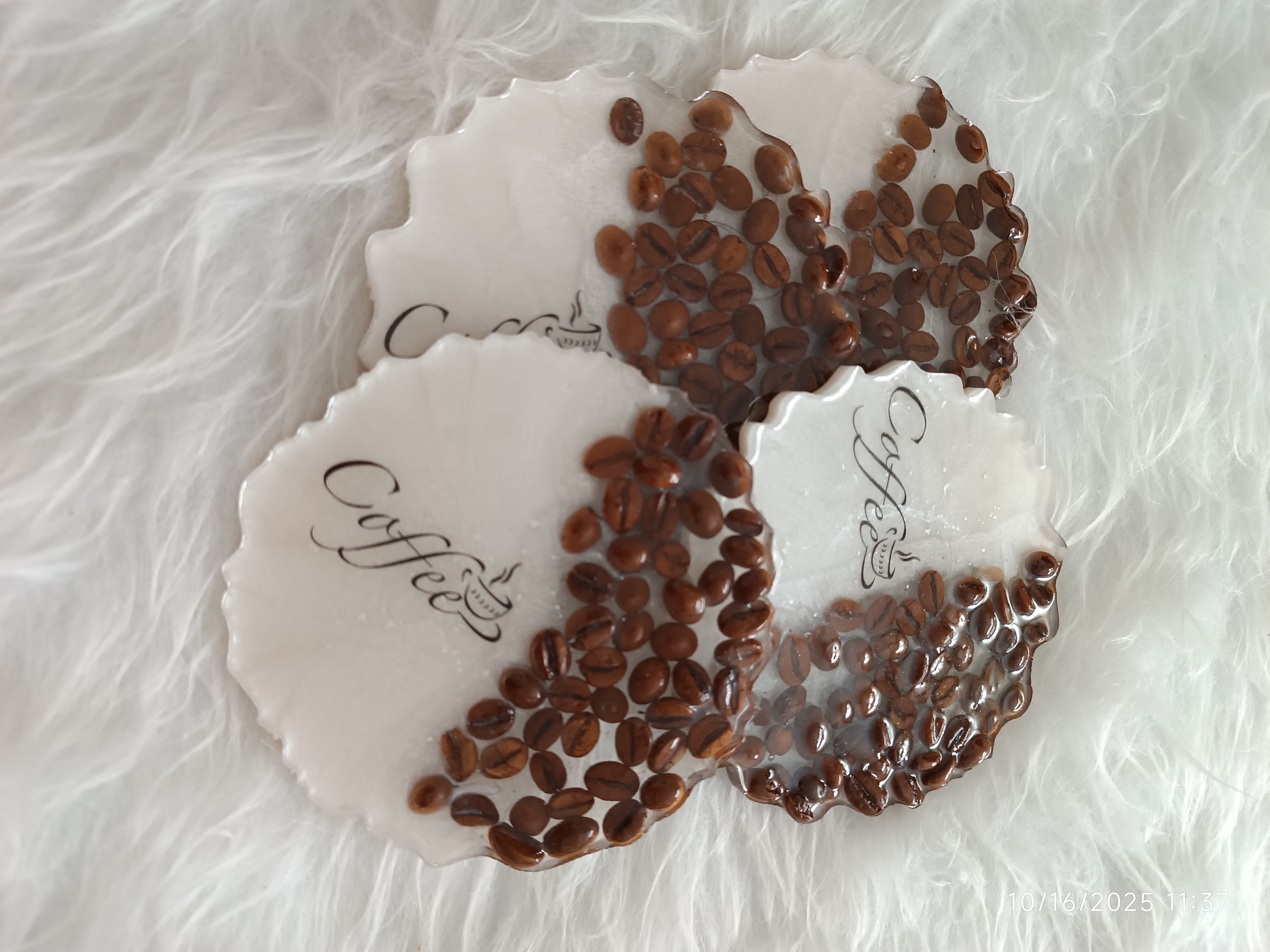 ست سینی رزینی و زیر استکانی طرح قهوه کافی شاپ