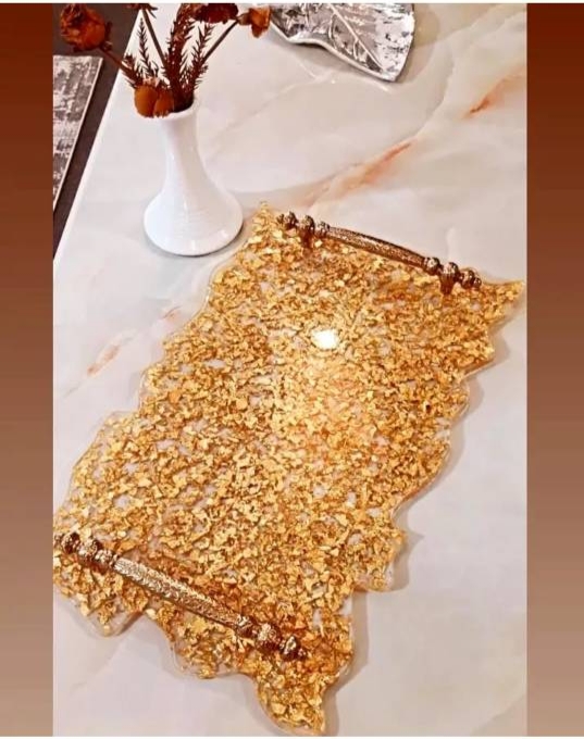 سینی رزینی تمام طلایی تمام ورق طلا و لوکس سایز بزرگ