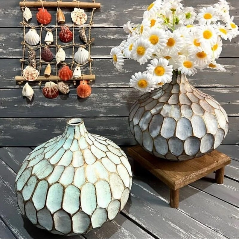 گلدان صدفی پلی استر ترند گلدون صدف دکوراتیو سایز بزرگ