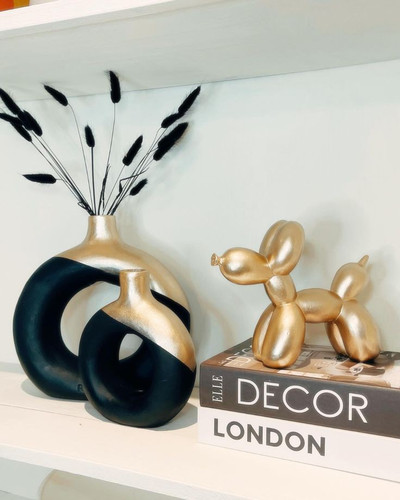 گلدان دوناتی دو عددی ب همراه هولدر سگ بادکنکی تمام ورق طلا