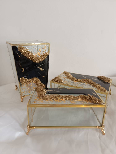 ست سطل و جا دستمالی شیشه ای مدرن رزینی جهیزیه عروس