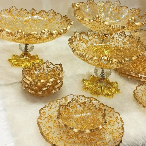 سرویس پذیرایی ۶نفره رزینی شیک با تکه های ورق طلا جهیزیه