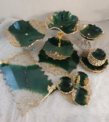 سرویس ظروف پذیرایی رزینی ۱۲ نفره سبز زمردی سبز درباری