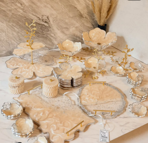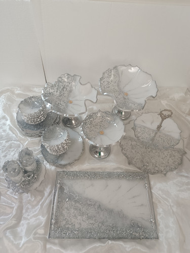 سرویس رزینی خاص سفید با تکه های ورق نقره ست۴تکه