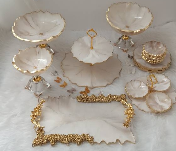 سرویس رزینی خاص سفید با تکه های ورق نقره ست۴تکه