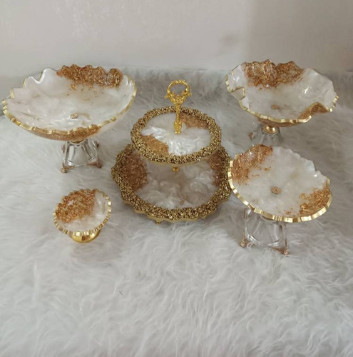 ظروف پذیرایی رزینی ۵تکه رزینی پایه برنجی