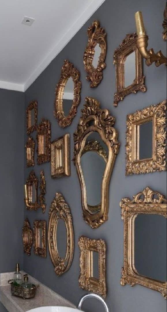 قاب آینه طرح ایکیا چاپ مخمل پتینه کاری مدرن