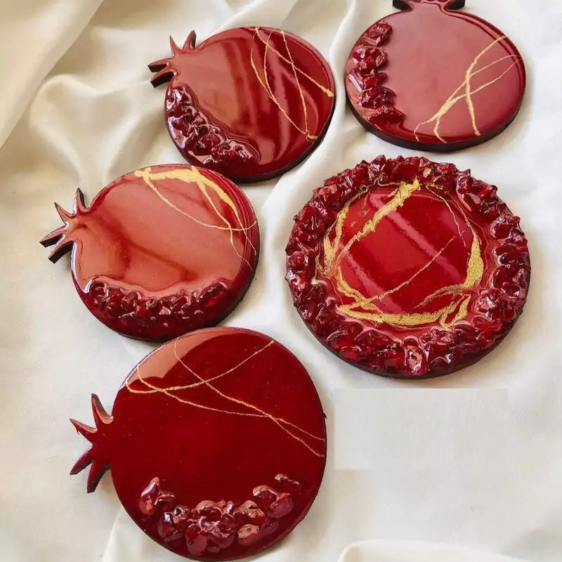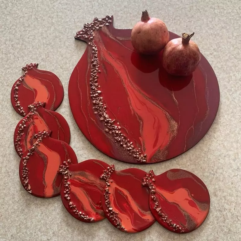 6 عدد زیر استکانی رزینی طرح انار یلدا ب همراه ظرف مینی