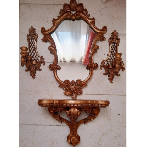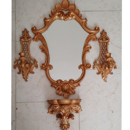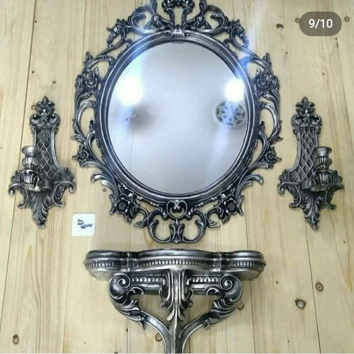آینه و کنسول همراه 2 عدد شمعدان دیواری