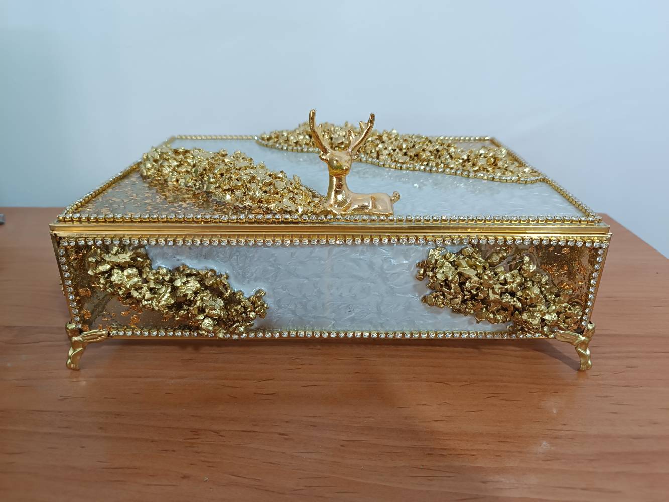 باکس دستمال شیشه ای رزینی جعبه شیشه ای دستمال