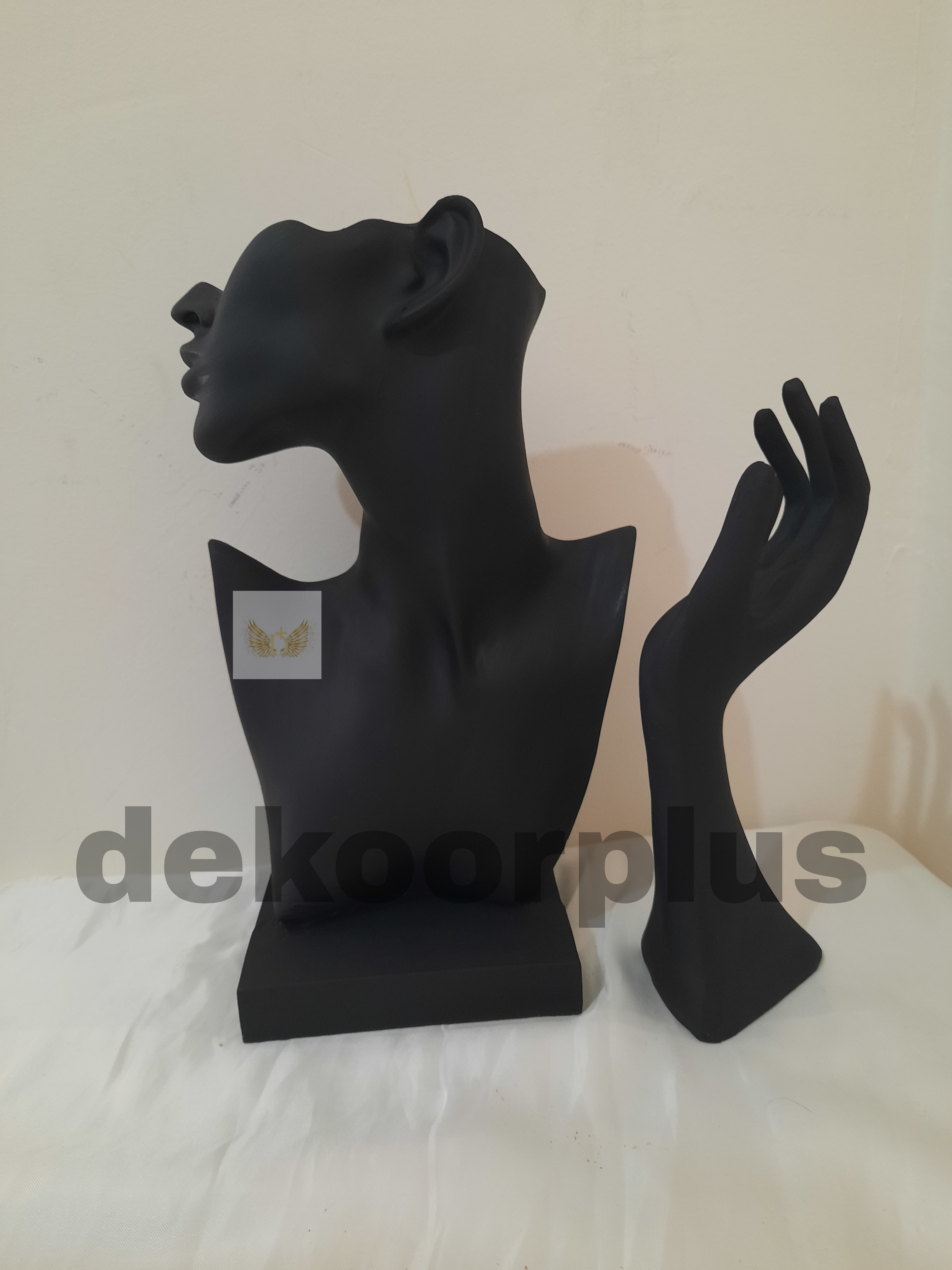 استند طلا و جواهر پایه دار به همراه استند دست مانکن تندیس طلا و جواهر