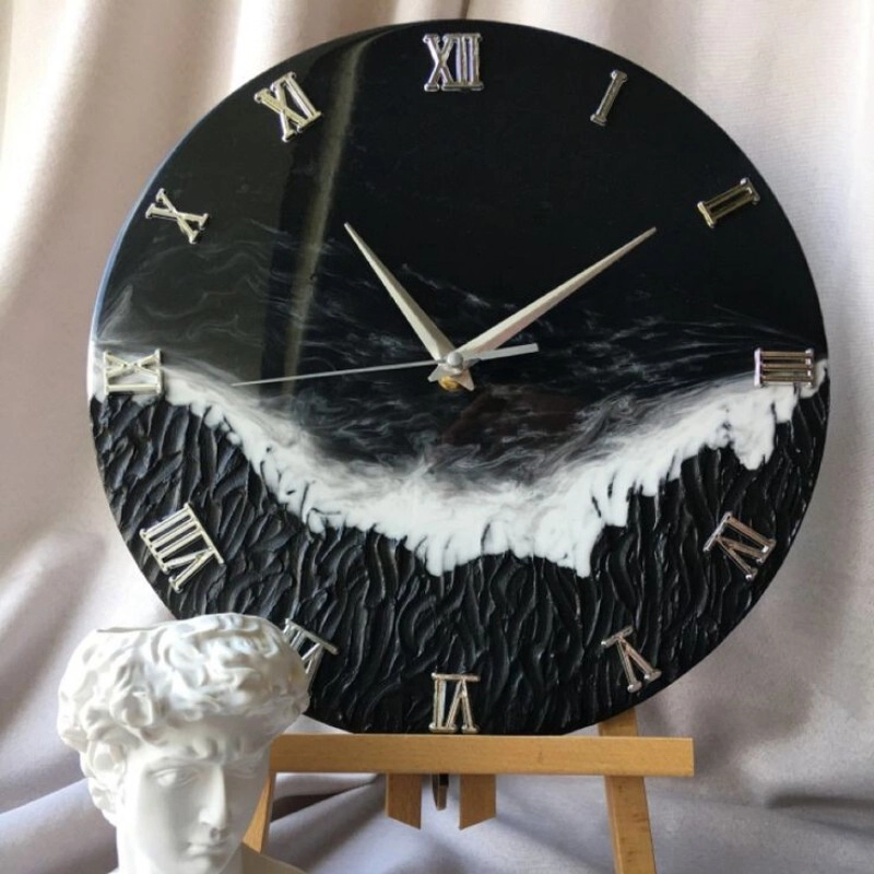 ساعت دیواری و دکوری رزینی طرح مشکی ابعاد60