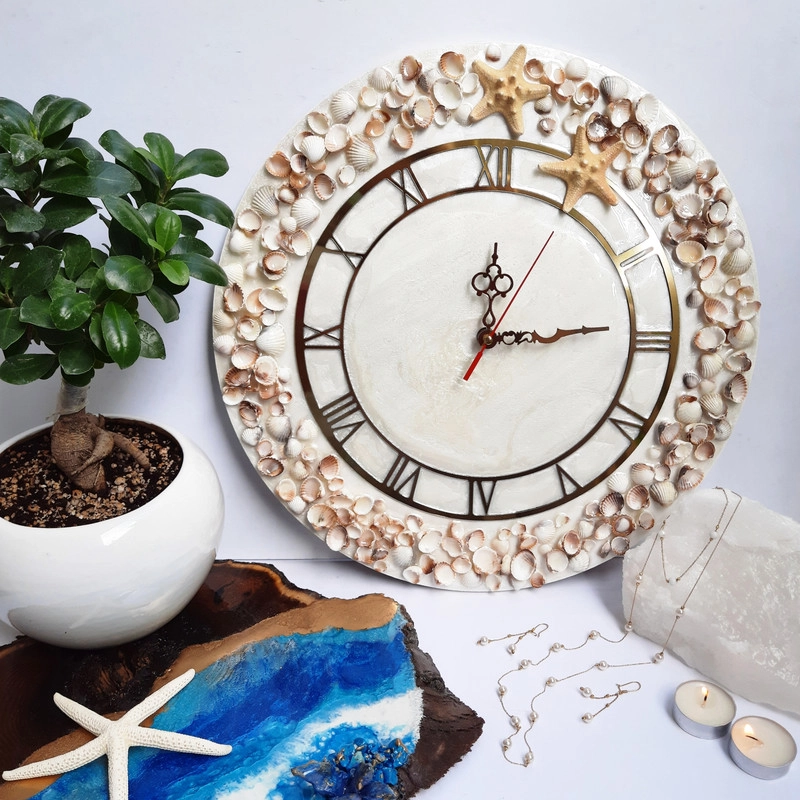 ساعت دیواری رزینی مدل صدف و ستاره دریایی قطر40
