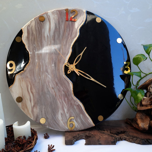 ساعت دیواری مشکی طلایی طرح سنگ رزینی قطر۶۰