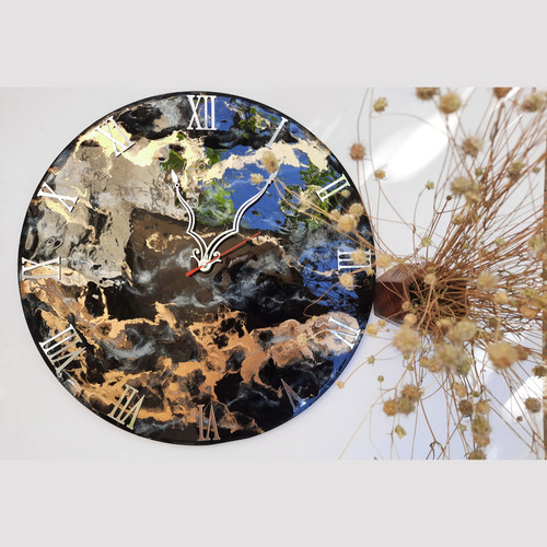 ساعت دیواری رزینی کارشده با رزین و کریستال قطر40