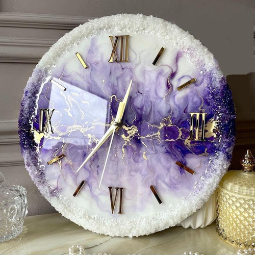 ساعت چوبی رزینی سفید بنفش قطر۶۰ جهیزیه عروس
