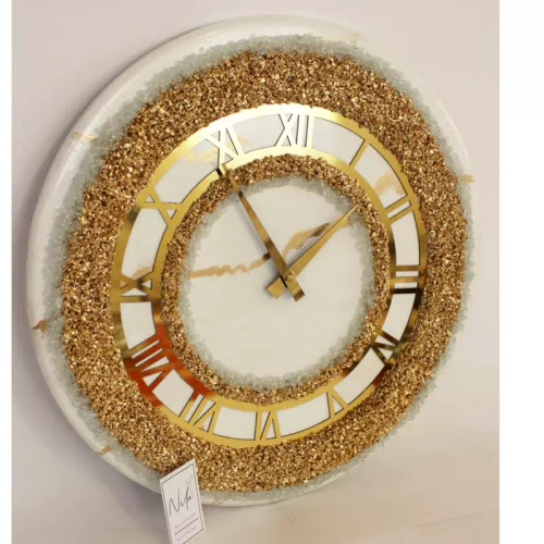 ساعت طرح سنگ مرمر رزینی سفید طلایی قطر۶۰