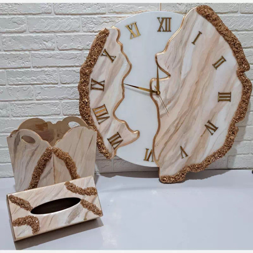 ست ساعت رزینی 60 سانت ب همراه سطل و جا دستمال و جاکلیدی جهیزیه عروس