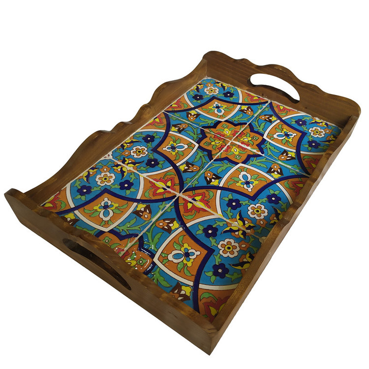 محصول فوق با چوب روسی ساخته شده که ماهیت ضد آب دارد و معمولا در کشتی سازی استفاده میگردد. کف سینی با کاشی های 10x10 فرش شده که خود کاشی ها از ارزش ریالی بالایی برخودار هستند و از ویژگی های منحصر بفرد این محصول می باشد. طراحی کاشی ها توسط طراح شرکت بصورت اختصاصی و با اقتباس از طرحهای قدیمی و اصیل اصفهان انجام گرفته است. کاشی ها دارای لعاب کاملا زنده و براق و بصورت برجسته می باشند. کاشی ها در دمای 1050 درجه پخت شده و هیچ عامل طبیعی از جمله حرارت و نور و سایش و غیره باعث پاک شدگی رنگ آن نمی شود و رنگ آن مادام العمر می باشد. فواصل بین کاشی ها و چوب با مواد عایق باداوام با دقت بند کشی شده و از ویژگی های منحصر بفرد این محصول است. این محصول بدلیل بندکشی و عایق بندی و استفاده از چوب روسی ضد آب و قابل شستشو می باشد. یک محصول کاملا صادراتی می باشد.