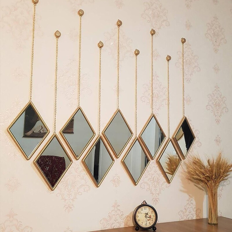 آینه دکوری لوزی اتصال زنجیر دکو گیوا مجموعه 9عددی