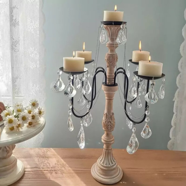 شمعدان پنج شعله منبتی بسیار شکیل وزیبا مناسب برای روی کنسول،میز نهارخوری ومیز جلو مبلی ارتفاع 66سانت فلز آبکاری شده رنگ ثابت کریستال درجه یک وشفاف چوب سوپر راش گرجستان کارهای دست یکم تفاوت در رنگ وسایز در آنها طبیعی هست