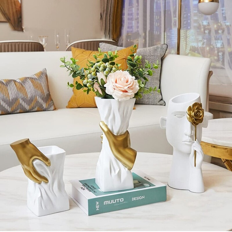 گلدان فانتزی طرح دست و گل بانو مجموعه سه عددی
