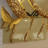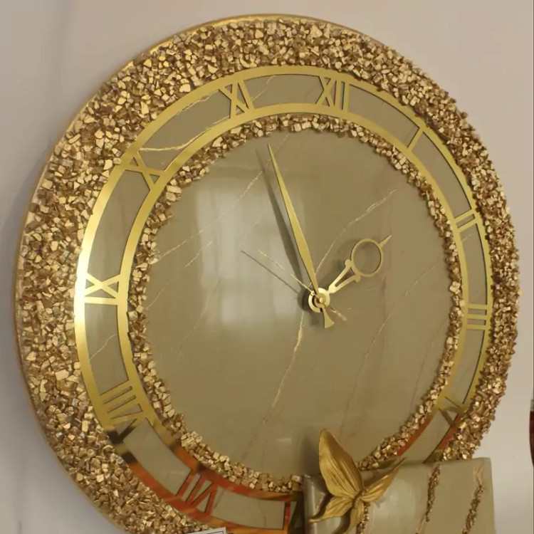 ست ساعت دیواری قطر۶۰ رزینی و جاکلیدی کرم طلایی