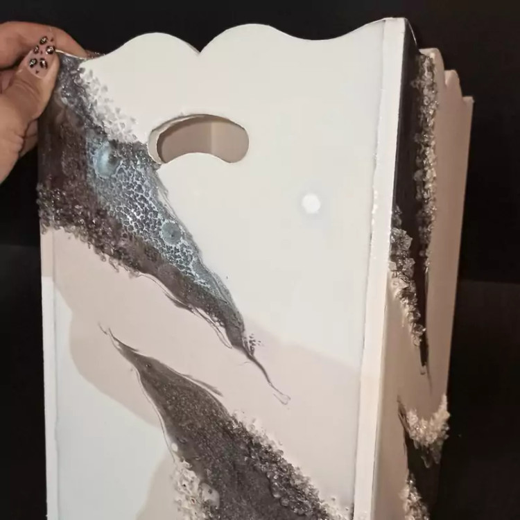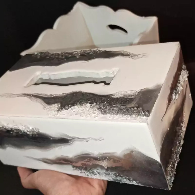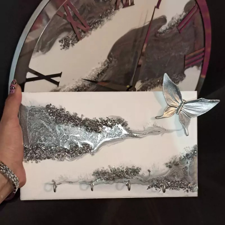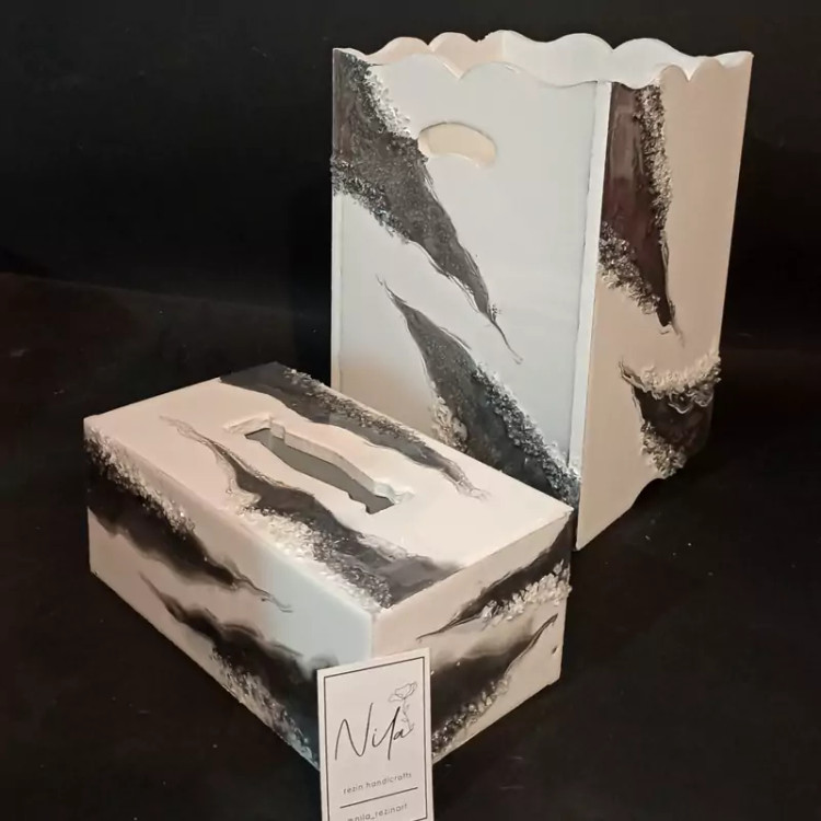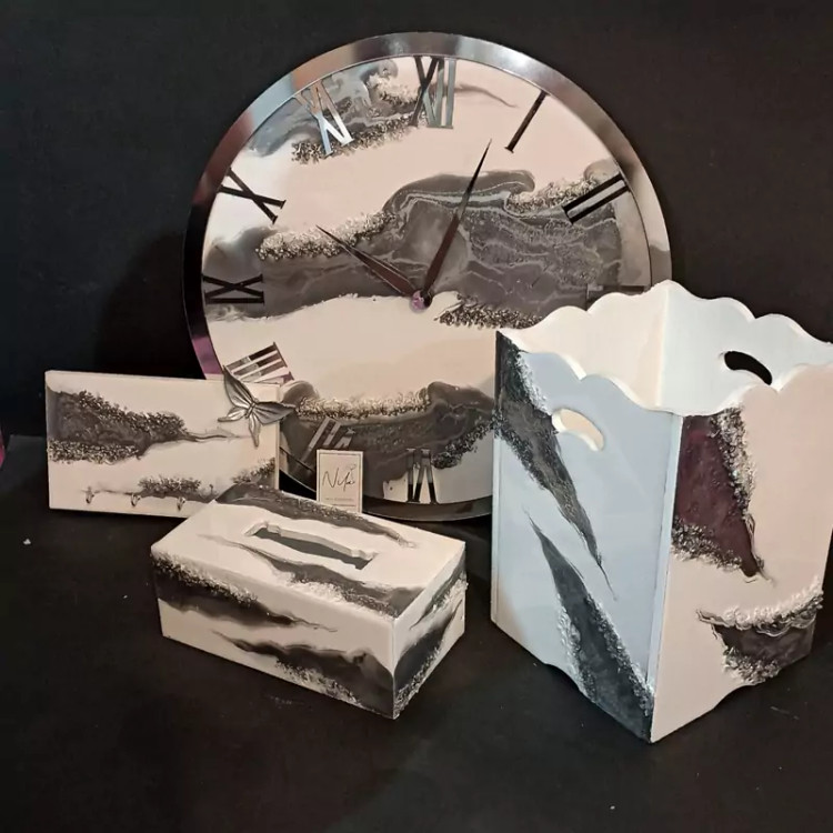 سرویس ساعت سفید نقره ای شامل ساعت جاکلیدیِ ست و جا دستمالی و سطل رزینی