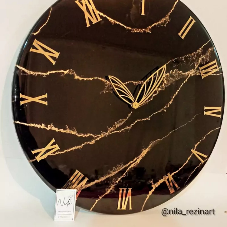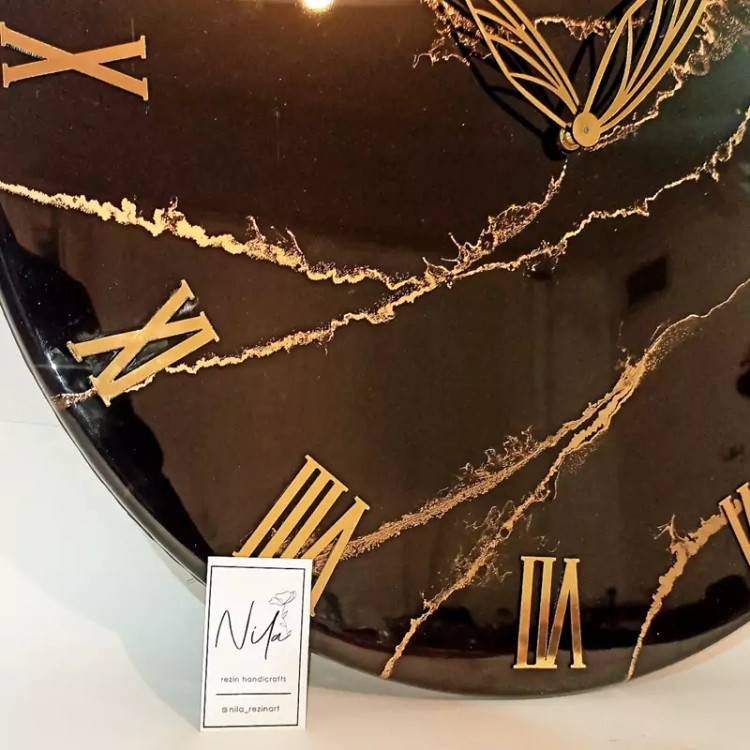 ساعت دیواری مشکی طلایی طرح سنگ رزینی قطر۶۰