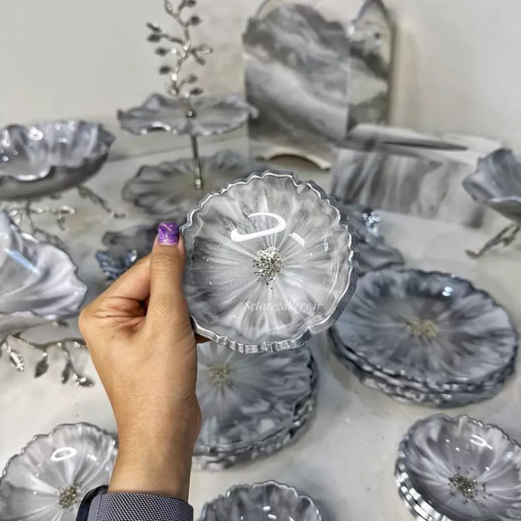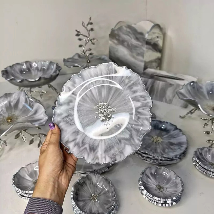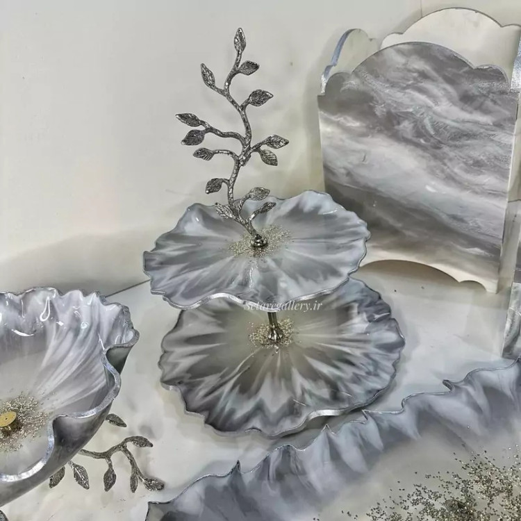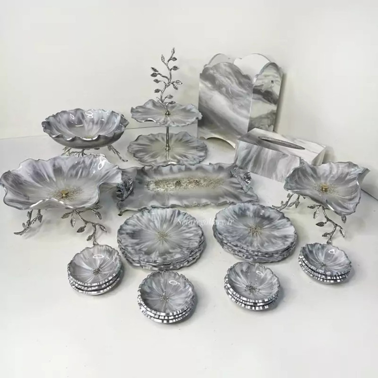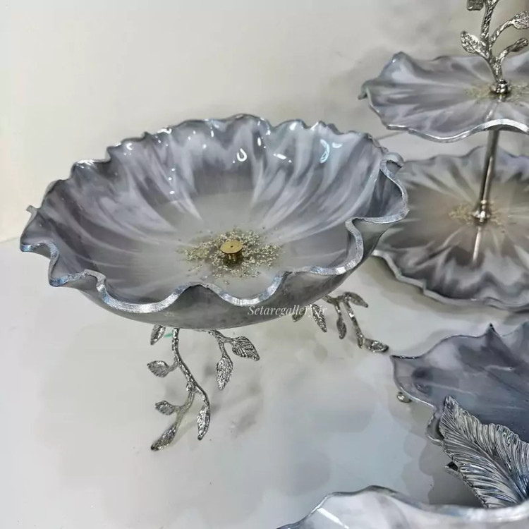 ظروف و سرویس پذیرایی رزینی شیک ۶نفره پایه برگی برنجی