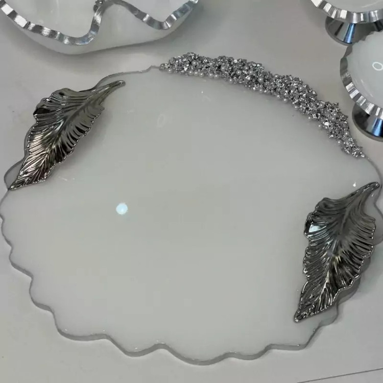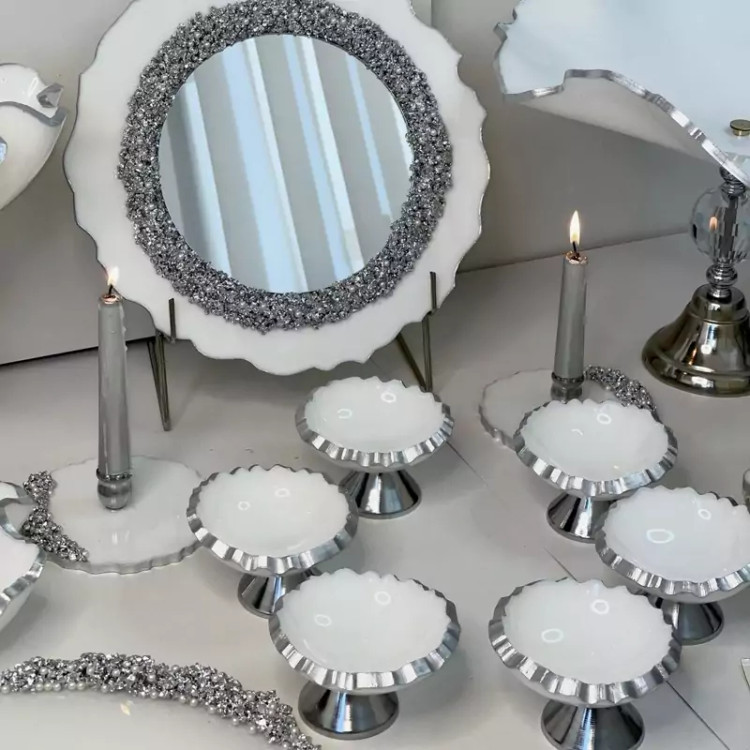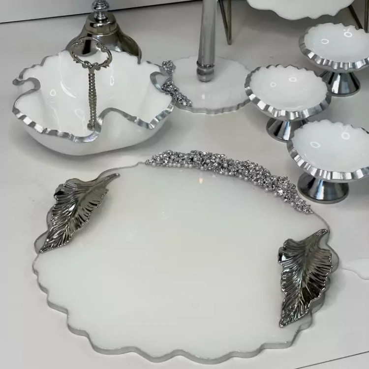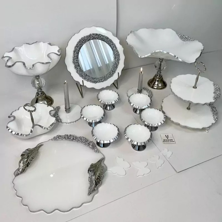 ست پذیرایی ۵تکه و هفت سین رزینی سفید نقره ای شیک