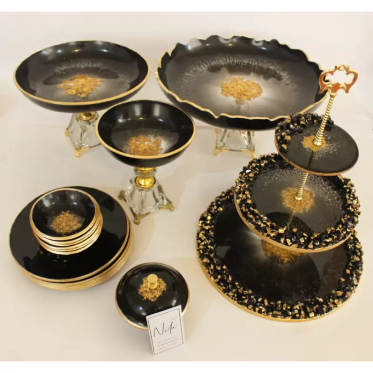 سرویس پذیرایی مشکی طلایی ۶نفره خاص شیک رزینی