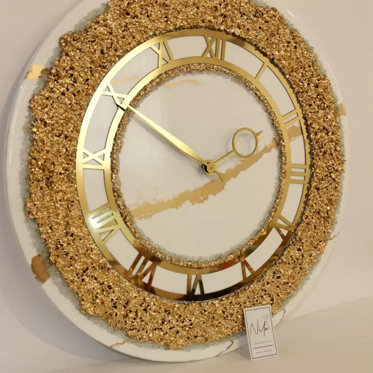 ساعت طرح سنگ مرمر رزینی سفید طلایی قطر۶۰
