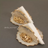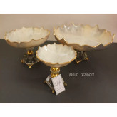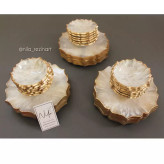 سرویس پذیرایی رزینی ۱۲ نفره طرح سنگ مرمر نباتی دور طلایی سرویس لوکس رزینی