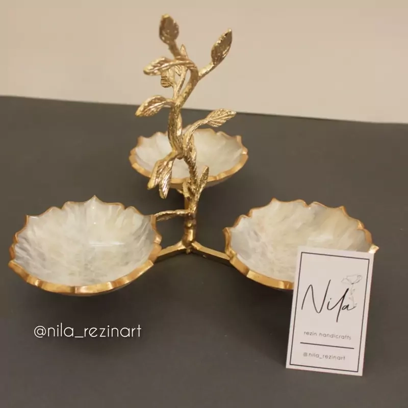 سرویس پذیرایی ۱۲نفره شامل میوهخوری بزرگ قطر ۴۰ ،آجیل خوری ،شکلات خوری، یک عدد اردوخوری، ۱۲عدد پیاله قطر۱۵، ۱۲ عدد پیشدستی قطر۲۰، یک عدد سینی مستطیل بزرگ طول۴۰ و یک عدد شیرینی خوری دو طبقه ابعاد طبقات ۳۰ و ۲۵ سانت میباشد و دو عدد استند دستمال