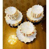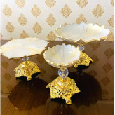 ظروف پذیرایی ۱۲نفره رزینی شیک جهیزیه عروس طرح مرمر نباتی طلایی
