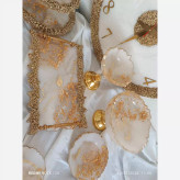 سرویس پذیرایی ۶نفره شامل میوهخوری قطر ۳۰ ،آجیل خوری ،شکلات خوری، یک عدد اردوخوری، ۶عدد پیاله، ۶عدد پیشدستی قطر۲۰، یک عدد سینی مستطیل طول ۳۰، یک عدد شیرینی خوری دو طبقه ابعاد طبقات ۳۰ و ۲۵ سانت میباشد