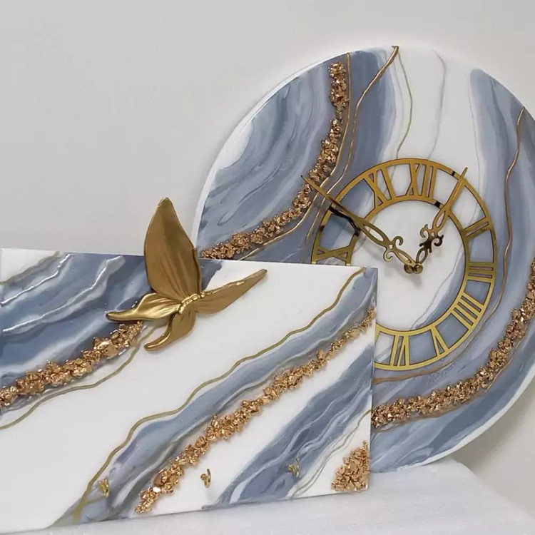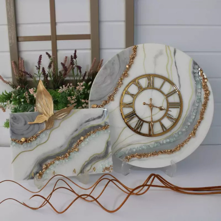 ساعت دیواری رزینی قطر60 به همراه جاکلیدی ست جهیزیه عروس