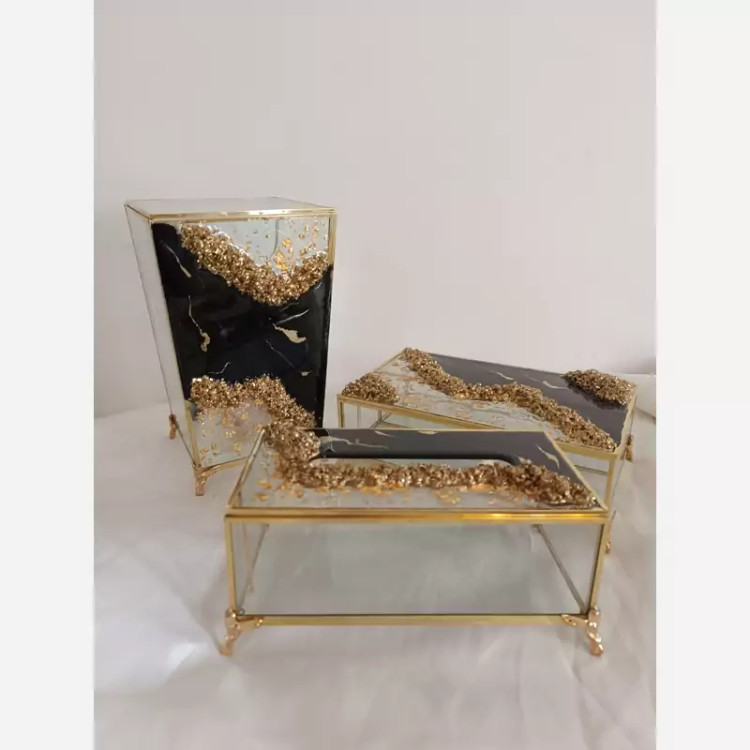 ست شیشه ای رزینی سطل و جادستمال و جاقاشقی