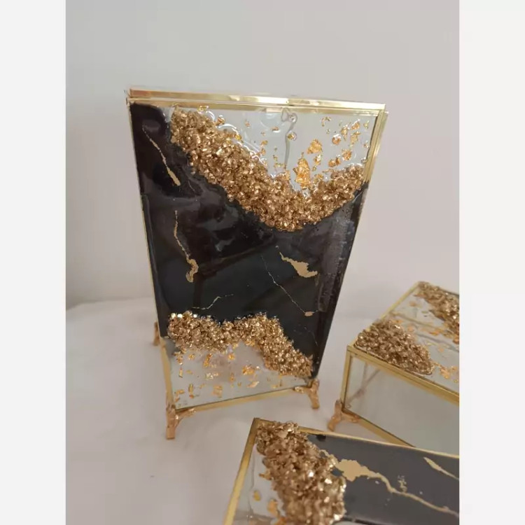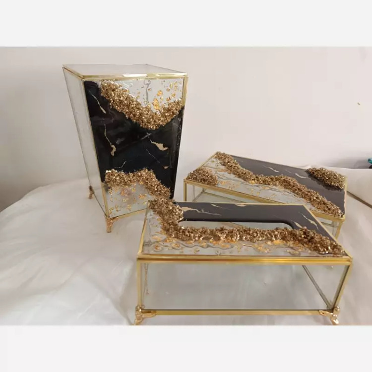ست شیشه ای رزینی سطل و جادستمال و جاقاشقی قابل اجرا با تم رنگی سفارشی