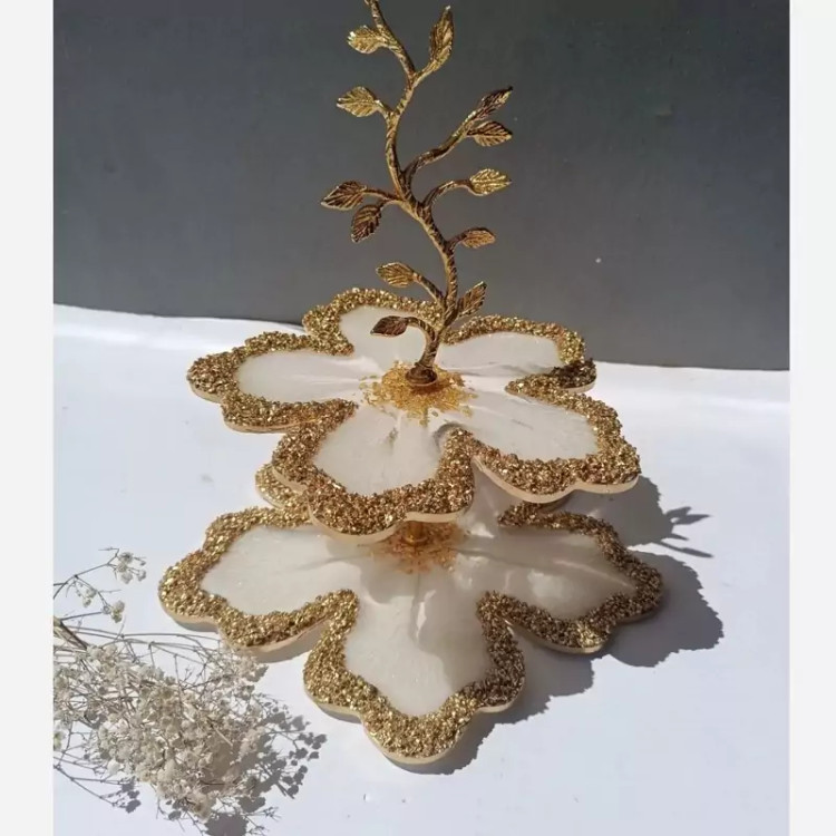 شیرینی خوری دو طبقه طرح گل هولدر کار برنجی و آبکاری قطر سایز زیری33,سایز بالایی22
