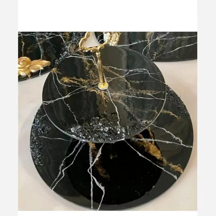 استند دو طبقه رزینی شیرینی خوری دو طبقه ماربل