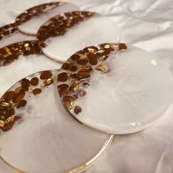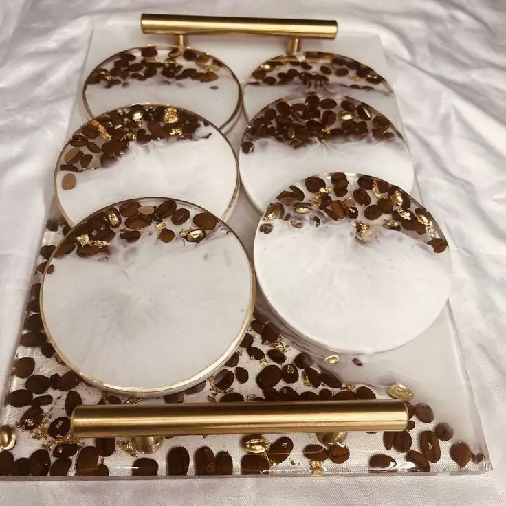 ست سینی رزینی و زیر استکانی طرح قهوه کافی شاپ