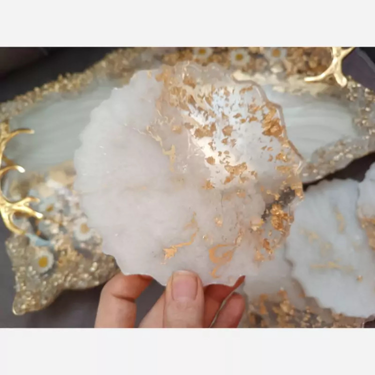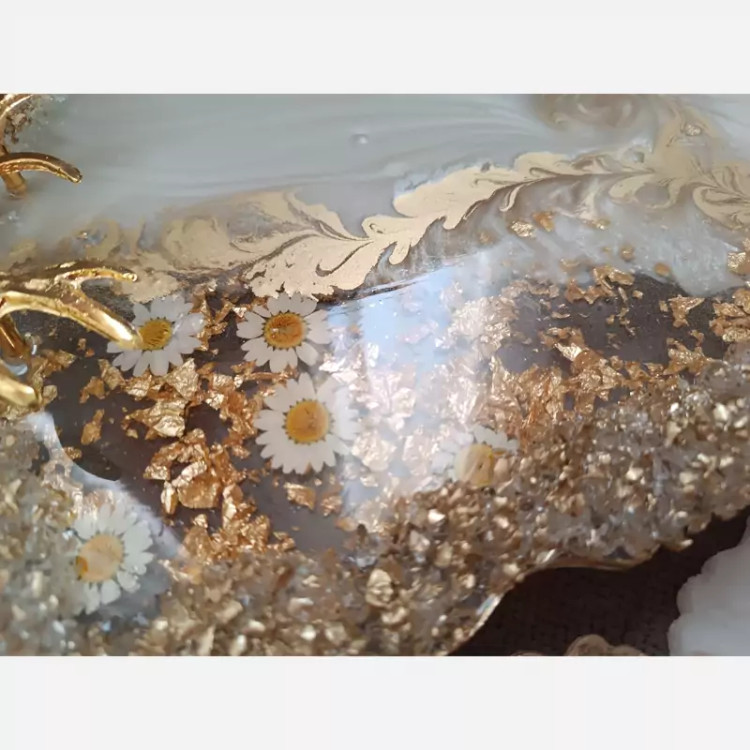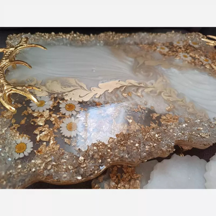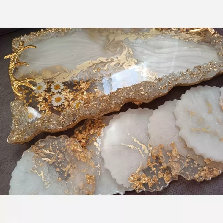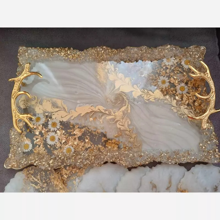 سینی سرو چای رزینی بابونه ب همراه 6عدد زیر استکانی